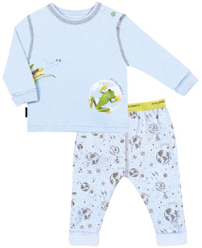 This 2 piece set from the kushies label it's my planet is made from 100 percent certified organic cotton and is so versatile your baby can wear it anywhere, sleeping or playing your baby will love wearing this super cozy and comfortable outfit, the pant features an elastic waist to keep pants secure while still being comfy and the snap placket on the top makes changing baby quick and easy, be sure to check out all of the coordinating pieces in the our world collection, www.kushies.com